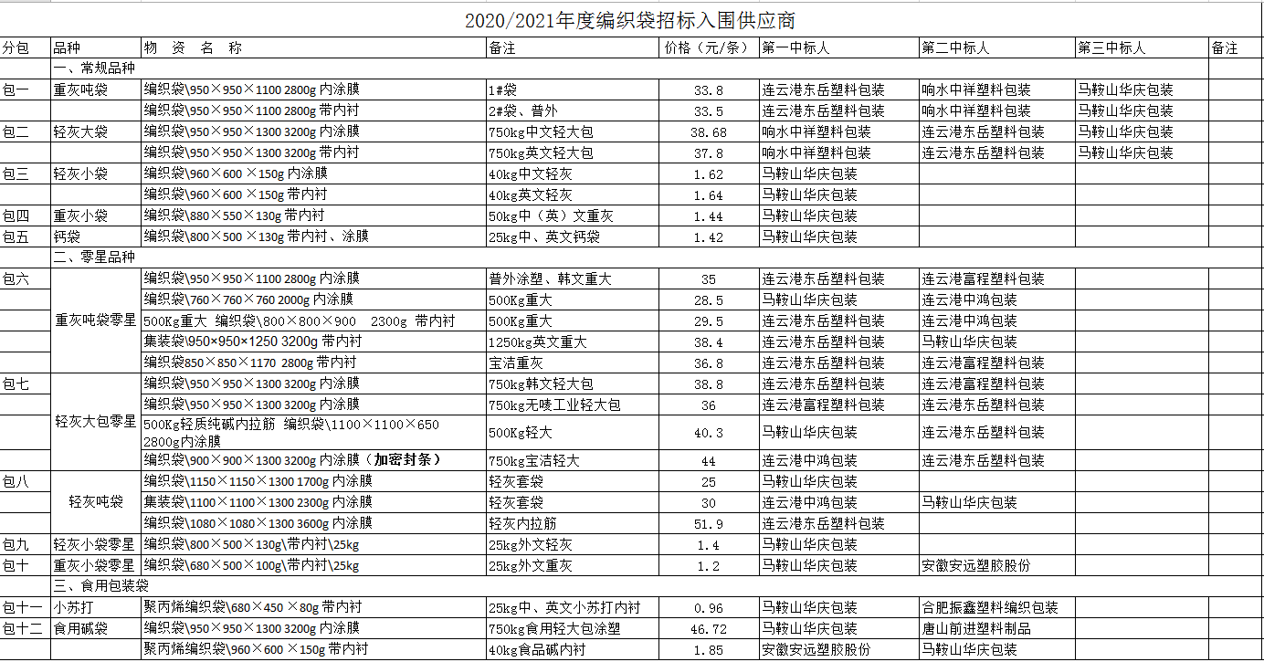 連云港堿業有限公司編織袋招標評審結果公示