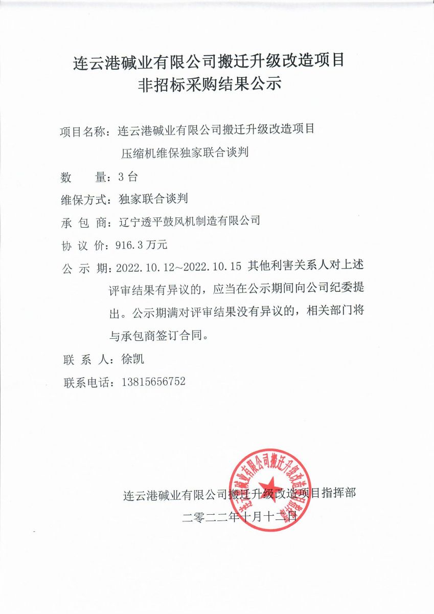 壓縮機維保獨家聯合談判結果公示